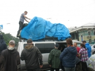 Около двенадати к нам наконец подъезжает “Истана” с верхним багажником и водителем, который согласен ехать в Орлик (быть может, потому, что он там еще ни разу не был), куда мы вяжем килограмм 600 наших рюкзаков, а сами загружаемся внутрь всей толпой (15 человек) и, несмотря на сильный перегруз, в районе часу благополучно выезжаем из Иркутска.Дорога до Култука дается нелегко – горные серпантины, с дорожными работами почти на всем протяжении. С нашим перегрузом особо не разгонишься, да и выехали поздно, поэтому с мечтами ночевать в Хадарусе приходится быстро распрощаться.
