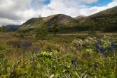 Начинаем спуск. Периодически встречаются разные красивые цветочки, представители альпийских лугов, мимо которых мне, как любителю природы, пройти сложно – аконит, дельфиниум, лилии, колокольчики и др. Через час тропа спускается в зону леса, и цветы практически кончаются.