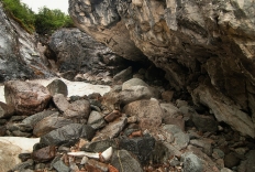 Вверх по Барун-Хадарусу Сперва тропа резко уходит вверх, и продолжается метрах в пятидесяти над рекой, вскоре спускается снова к реке, обходя осыпь. В дальнейшем она пару раз переходит на другой берег, и возвращается обратно, иногда же идет прямо руслом, теряясь в галечных отмелях Барун-Хадаруса. К счастью, сейчас довольно мало воды, да и та довольно теплая, прогретая солнышком. Исключительная прозрачность призывно манит окунуться, что мы и делаем на привалах. Ближе к вечеру солнышко прячется, набегают тучи, а путь наш все еще далек от завершения – дорога оказалась сложнее, чем мы рассчитывали.  Бомы Барун-Хадаруса