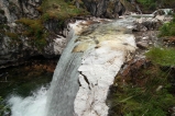 Через час после старта достигаем водопада на правом борту долины. В прошлый раз (2009м году) он был гораздо полноводнее и интереснее, и повторно проводить фотосессию, да еще в дождь, желания не возникло – проходим мимо.
