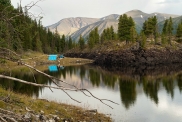 Спокойный Жомболок В Хадарусе традиционно начинают сплав по Жомболоку те группы, что планируют перед этим сбегать на вулканы. Но мы с Машей просим высадить нас пораньше – в районе 42-го порога, поскольку именно отсюда собирается стартовать наша нижегородская группа (на вулканы они идут с аршанских источников в Хойто-Голе). Сделав закладку сплавного и полюбовавшись на порог, проходим шесть километров пешком до поляны старта, находящейся за зимовьем Хадарус (правда, в данный момент это уже никакое не зимовье, а настоящий хутор из двух жилых домов, с баней, сараем, несколькими загонами для скота и лошадей и большим хозяйством).