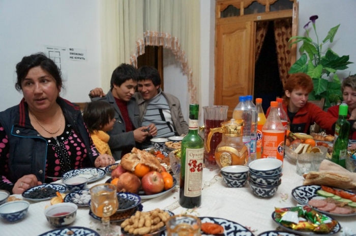 За праздничным столом с узбекскими блюдами сидели ее сын, дочь, муж и другие родственники. Вместе с нами Роза пригласила и всех других постояльцев. Зимой их у нее немного. Кроме нас были еще две русские подруги с Алтая, японец и француз.
