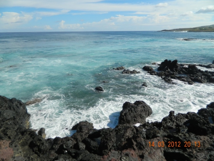 Как я уже сказал, прибыли мы в отель около семи часов утра. Бессонная ночь, нам бы поспать часа два, да не тут-то было - эти тупые правила с check-in и с check-out . Мы хоть и часто ругаем наш российский ненавязчивый сервис, но у нас, как правило, если номер свободен, то за раннее заселение денег не берут, а если рейс поздно вечером и новых клиентов нет, то наши люди очень часто могут войти в положение и оставить номер еще на несколько часов (и совершенно необязательно, что с доплатой), так было у меня не раз. Здесь же, как мы не уговаривали товарища на reception, что мы не спали ночь и очень устали, все было бесполезно. Время заселения в 13.00 и все!! Хотя номера свободные были!! Потом он все-таки поселит нас на час пораньше, но за прирекания с ним не даст нам пульты от кондиционеров, сказав, что нам не положено. Может, и не все чилийцы такие... Сменивший его работник с вежливой улыбкой выдал нам эти злополучные пульты. Ну, а до двенадцати часов мы пошли гулять на причал у залива Тихого океана на западе поселка. Там мы увидели первые настоящие статуи моаи