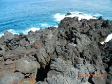 Очень хорошо можно представить, что это когда-то страшно горело и, извергая пар и дым, текло в пучину океана, увеличивая остров. За прошедшие миллионы лет застывшая лава такая же острая и черная с красными разводами, как и была.