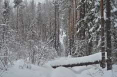 Постепенно надежда, что мы успеваем дойти за сегодня, укрепляется - после лесоучастка буранка становится более выраженной, и хотя и уводит нас с запланированного трека, зато прямиком выводит на Главный ус (центральную транспортную магистраль Унжлага). Дорога здесь хорошо укатана буранами, и по ней мы довольно быстро нагоняем график. Останавливаться на перекус практически нереально – очень холодно, но есть-то хочется. Восстановить теплоту ног и рук после остановки можно только с помощью интенсивного хода, благо буранка это позволяет. На стоянку решено вставать, не доходя примерно 2-4 километра до пос. Северного. Уже темно. Да еще и батарейки начинают барахлить - все показывают, что разряжены, хотя и ехали в тепле на теле. А нет батареек, это значит, нет навигатора, нет фонарика. Как назло, на этом участке заканчивается хороший лес и начинается березняк с редкими включениями елок. При таком морозе это напрягает – нужен хороший костер, а в таком лесу без фонарика сушину найти трудно. Сходим с буранки в придорожный лес в надежде найти хоть что-то. В это время по дороге проносится мимо 8 снегоходов. Мелькает пораженческая мысль: «а ведь могли бы подвезти, можно было бы на постой напроситься…», но гоним ее прочь, да и снегоходы уже далеко. С дровами здесь как-то совсем туго… Так как в поисках сушины идем медленно, ноги начинают замерзать. Наконец-то находим какое-то полусломанное дерево, дальше искать сил нет. Я уже замерзла до такой степени, что от меня сегодня толку мало – единственная мысль: только спальник спасет меня. Срочно ставлю палатку и залезаю в него. Немного отпускает, жизнь возвращается, по ногам разливается тепло, но покидать спальник нет никакого желания, и приходится приложить неимоверные усилия, чтобы сделать это. К этому времени яма уже выкопана, дрова заготовлены, костер вовсю горит, а в котелке топится снег. Вечер и ночь проходят как обычно, спится хорошо и уютно.  |