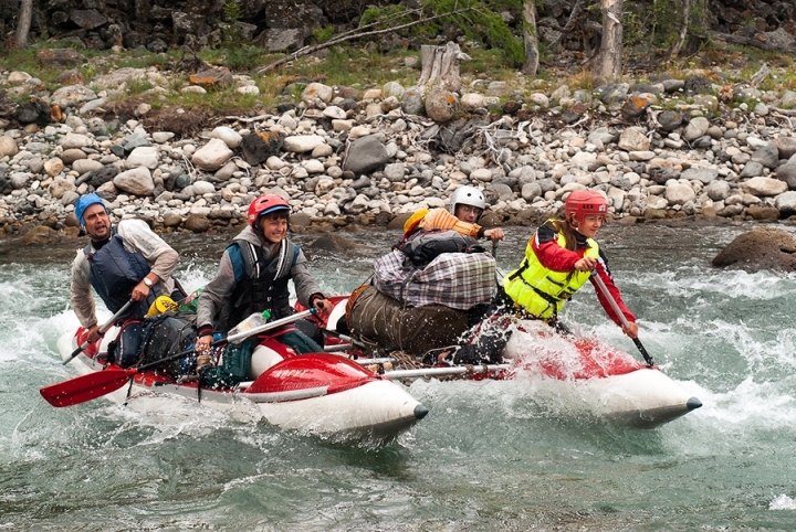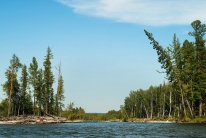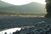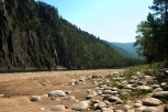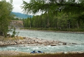 2. На Жомболоке мы, для своего текущего уровня опыта, оказались весьма своевременно - его вполне хватало для уверенного прохождения всех препятствий (коих, к сожалению, там совсем немного), при этом речка вовсе не показалась простой, и впечатления от нее остались лишь самые положительные (с удовольствием бы обкатали как-нибудь снова). А вот Ока саянская в этот раз воспринималась откровенно скучновато в плане спорта (хотя, возможно, виной тому очень низкий уровень воды). Впрочем, саянские красоты и неизменно солнечная погода (а также хорошая рыбалка) отчасти компенсировали сей недостаток. В общем, река сугубо для отдыха. Правда, дыхание цивилизации ощущается на ней с каждым годом все сильнее, что не может не удручать.
