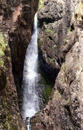 Взбираемся по камням наверх вдоль каскадов ручья, и, наконец, выходим к пятнадцатиметровому отвесному водопаду. Фотографируем красавца и пытаемся подняться еще выше по скалам, в надежде, что удастся снять водопад с верхней точки. К сожалению, он быстро скрывается за непроходимыми скальными выступами, но продолжаем подъем в надежде выйти на скальный гребень над нашей стоянкой.